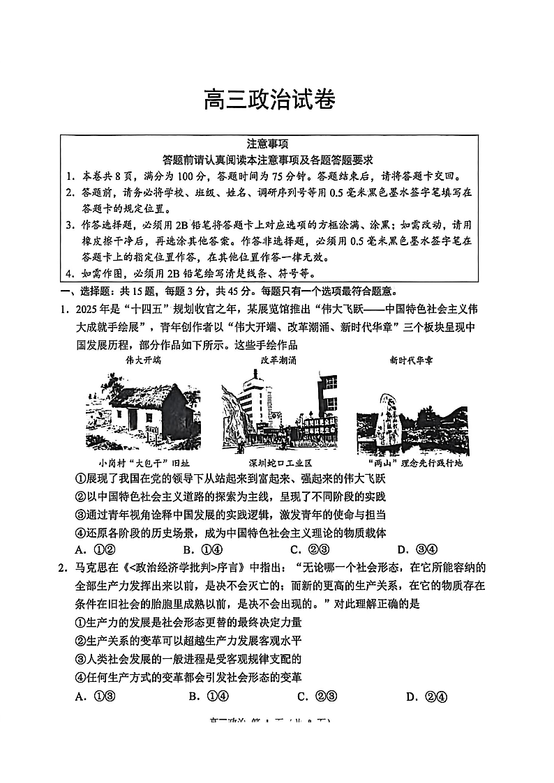 江苏省苏州市2025-2026学年高三上学期期末考试 政治试题(含答案).pdf