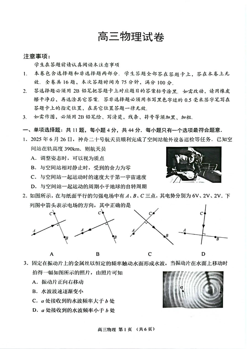 江苏省苏州市2025-2026学年高三上学期期末考试 物理试题(含答案).pdf