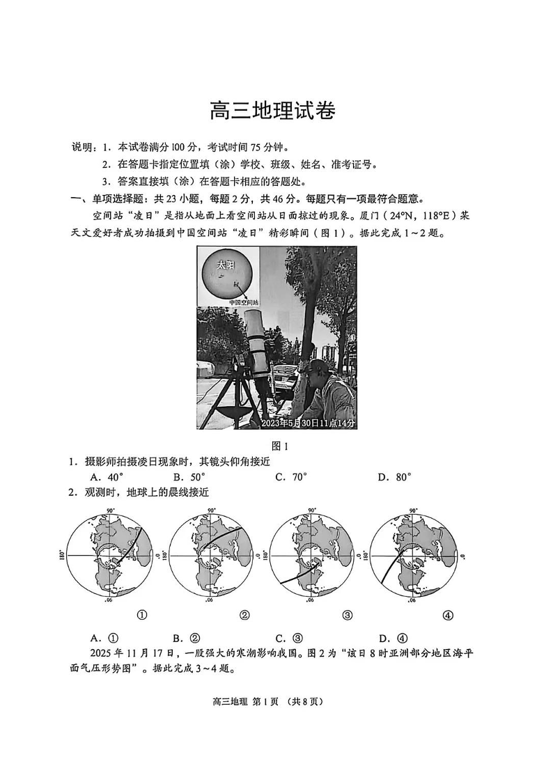 江苏省苏州市2025-2026学年高三上学期期末考试 地理试题(含答案).pdf