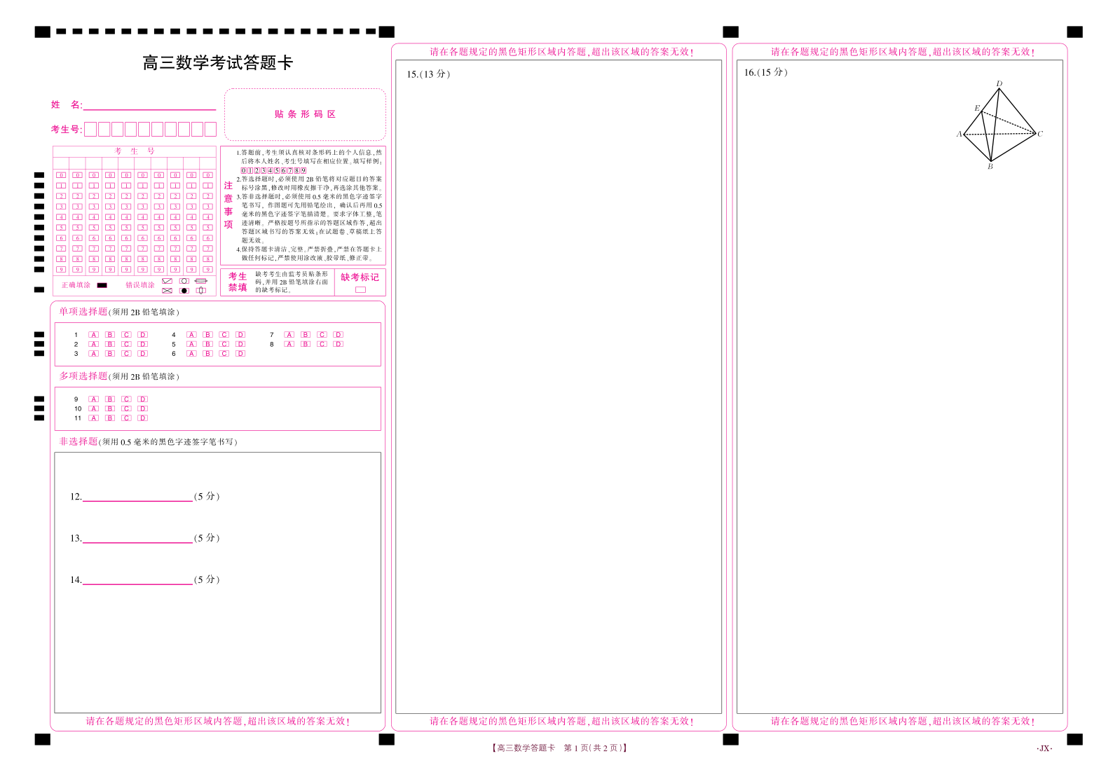 江西省2026届高三上学期1月百万大联考 数学答题卡.pdf