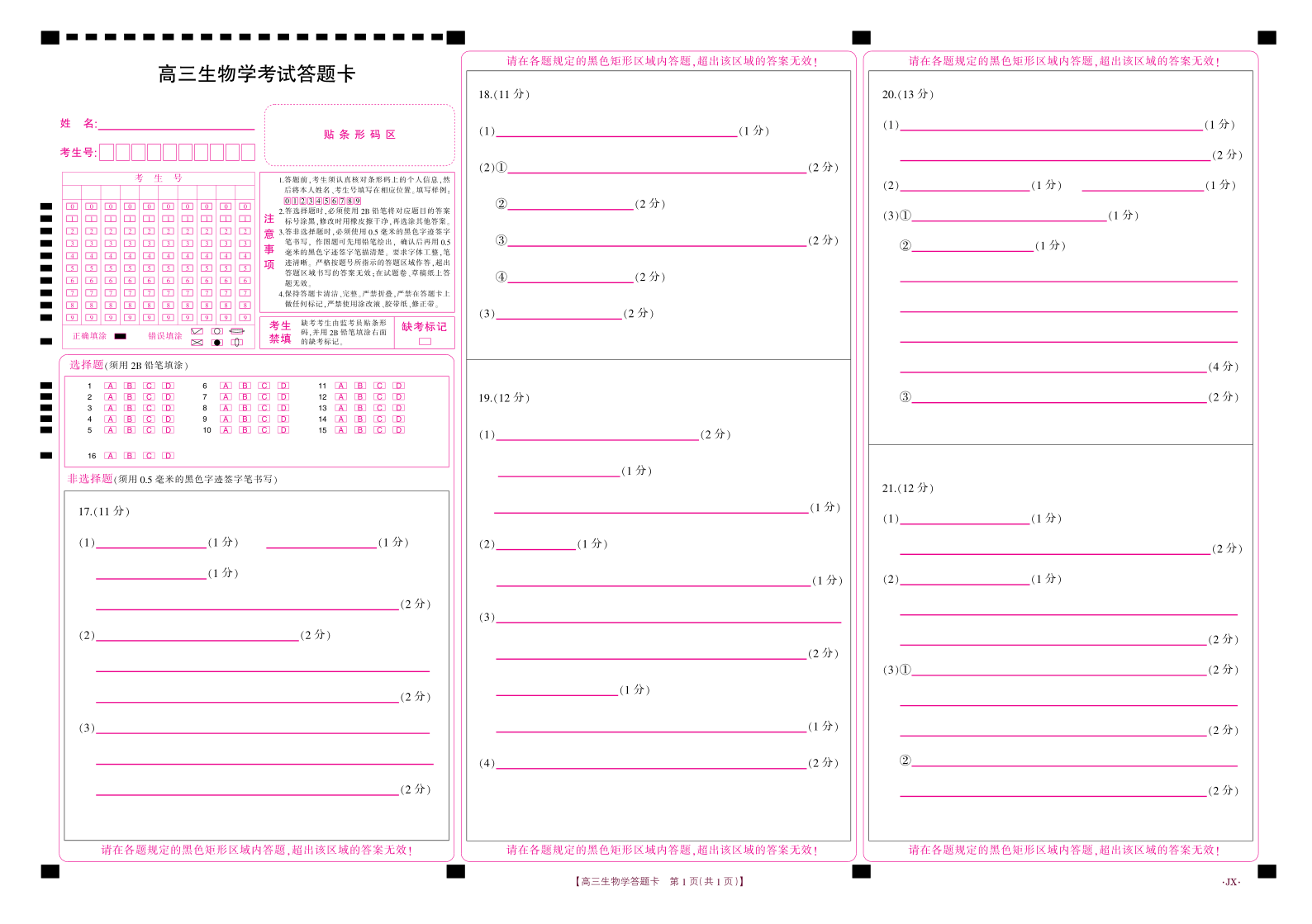 江西省2026届高三上学期1月百万大联考 生物学答题卡.pdf