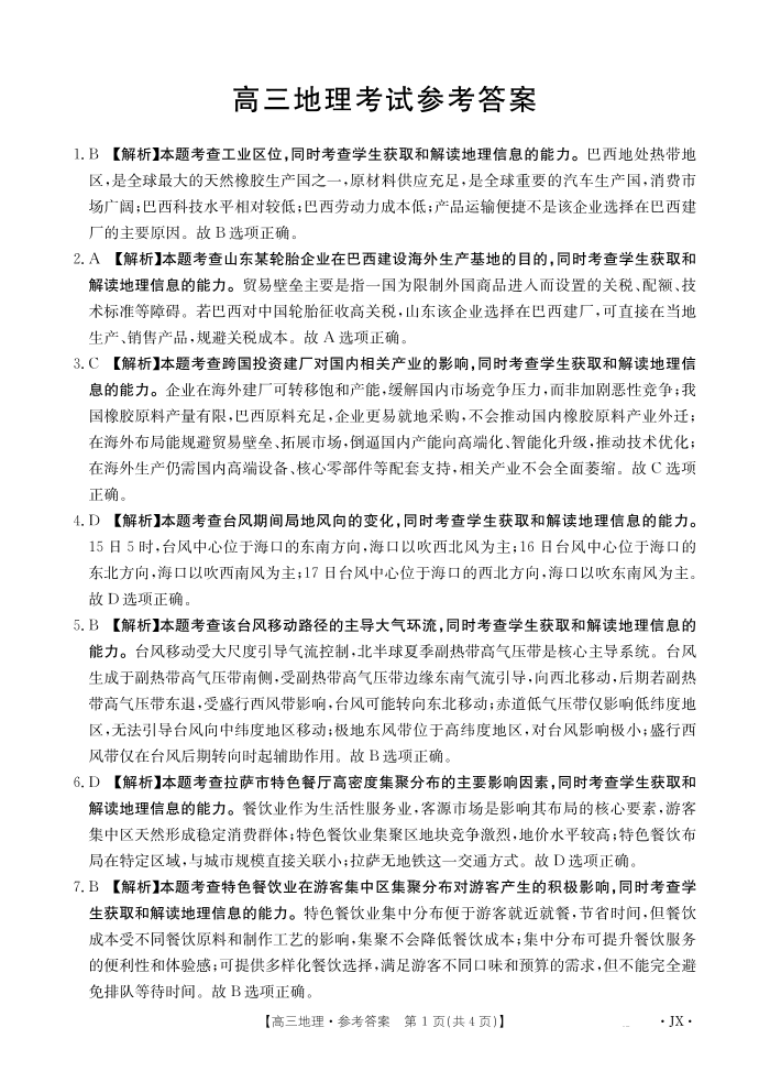 江西省2026届高三上学期1月百万大联考 地理答案.pdf
