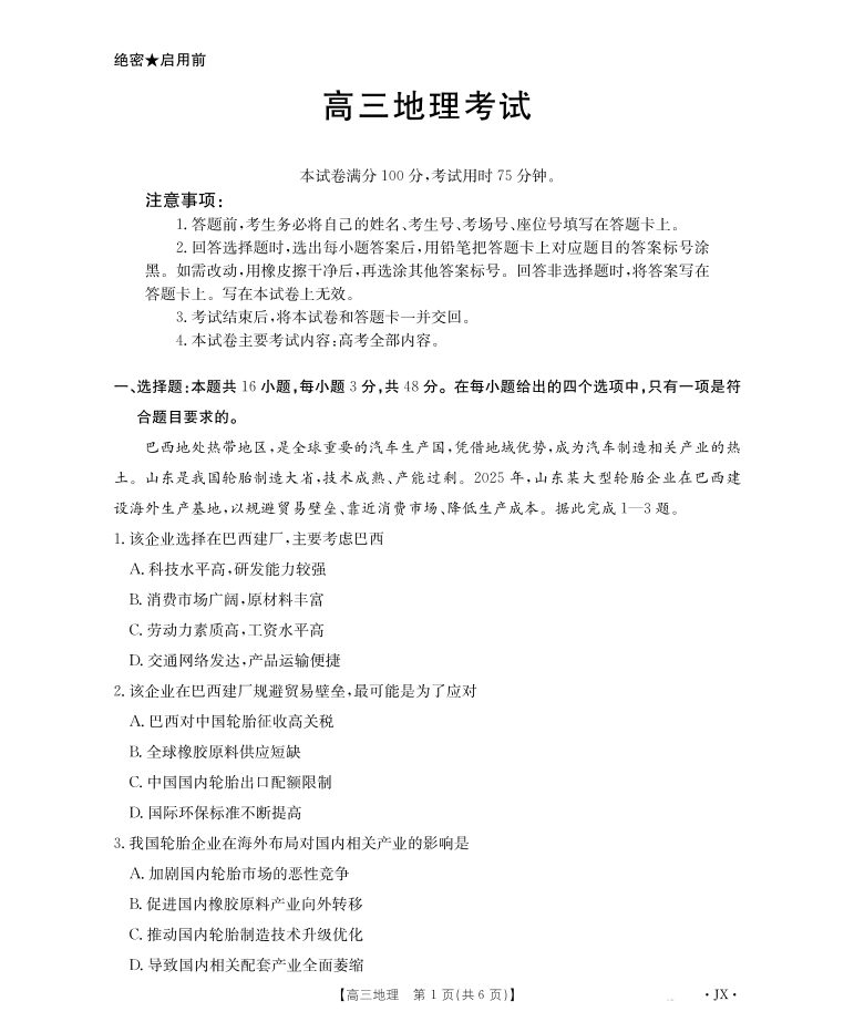 江西省2026届高三上学期1月百万大联考 地理.pdf