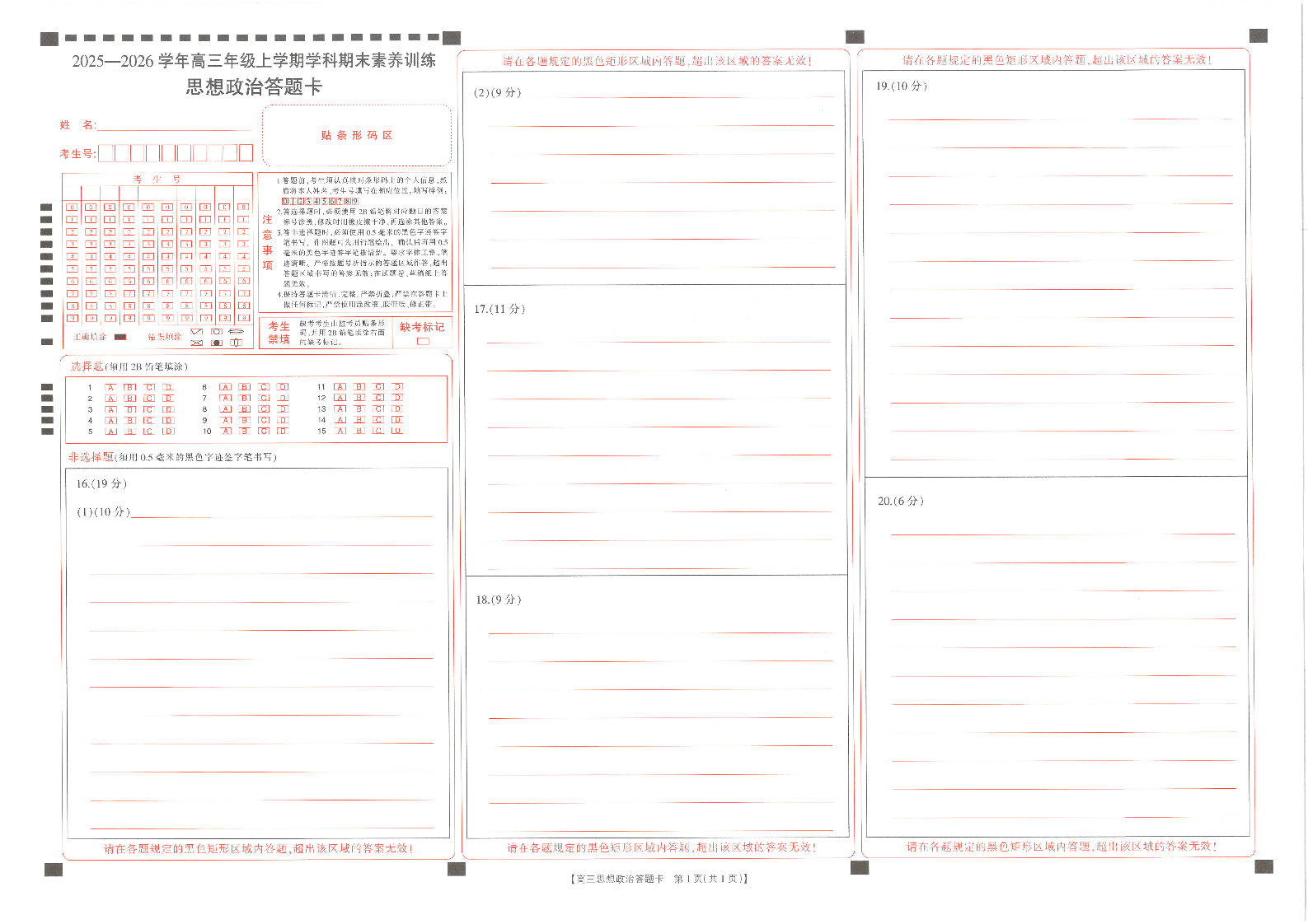 江西省2025-2026学年高三年级上学期学科期末素养训练 政治答题卡.pdf