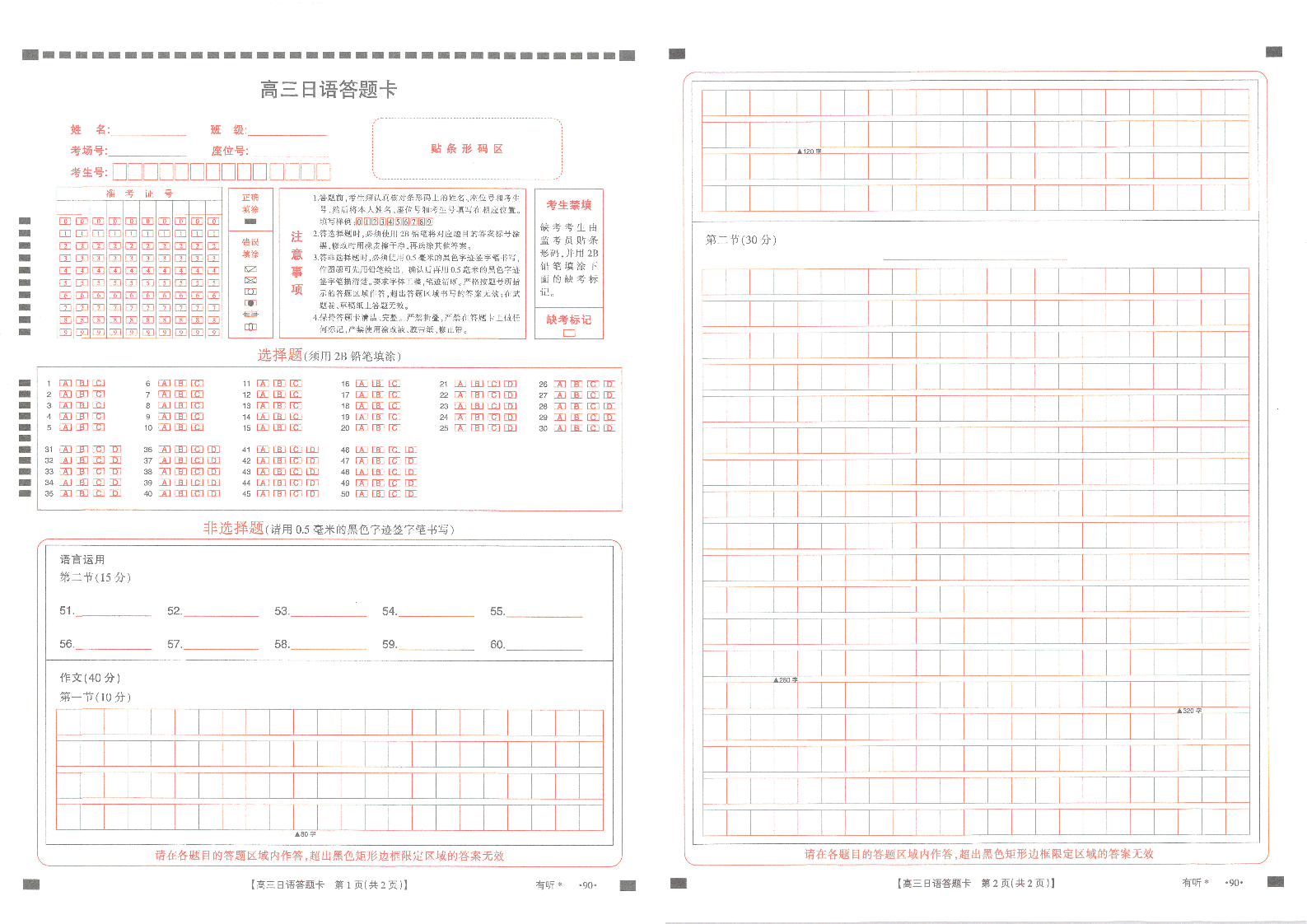 江西省2025-2026学年高三年级上学期学科期末素养训练 日语答题卡.pdf