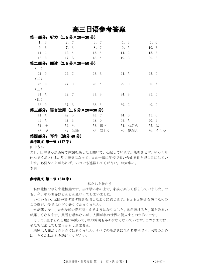 江西省2025-2026学年高三年级上学期学科期末素养训练 日语答案.pdf