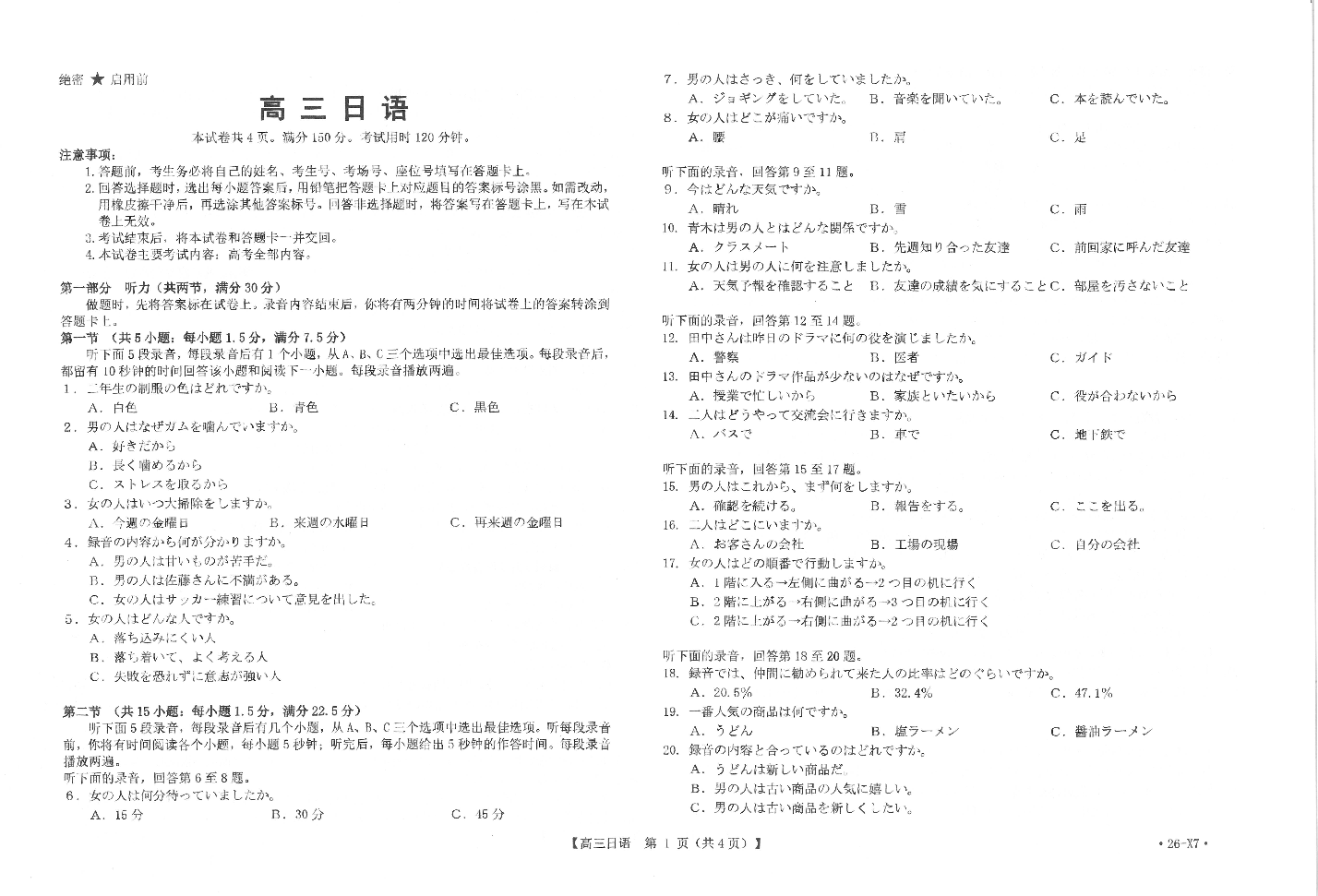 江西省2025-2026学年高三年级上学期学科期末素养训练 日语.pdf
