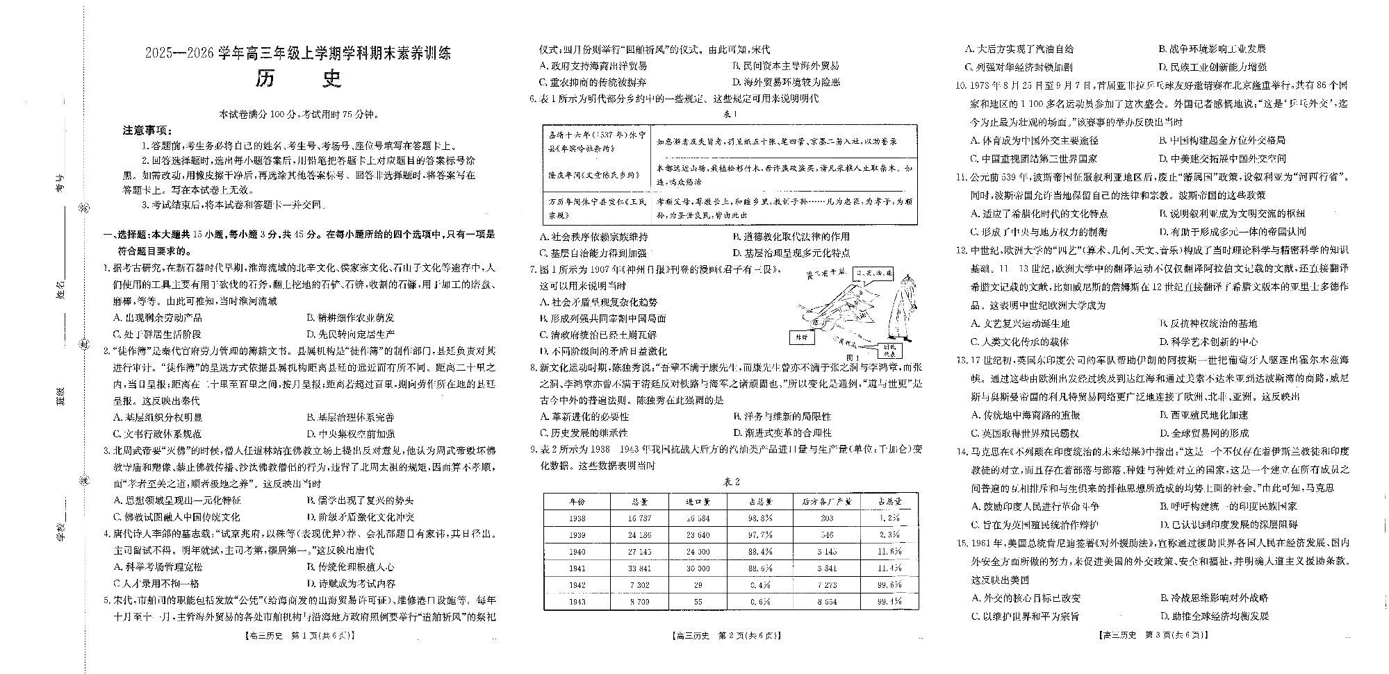 江西省2025-2026学年高三年级上学期学科期末素养训练 历史.pdf