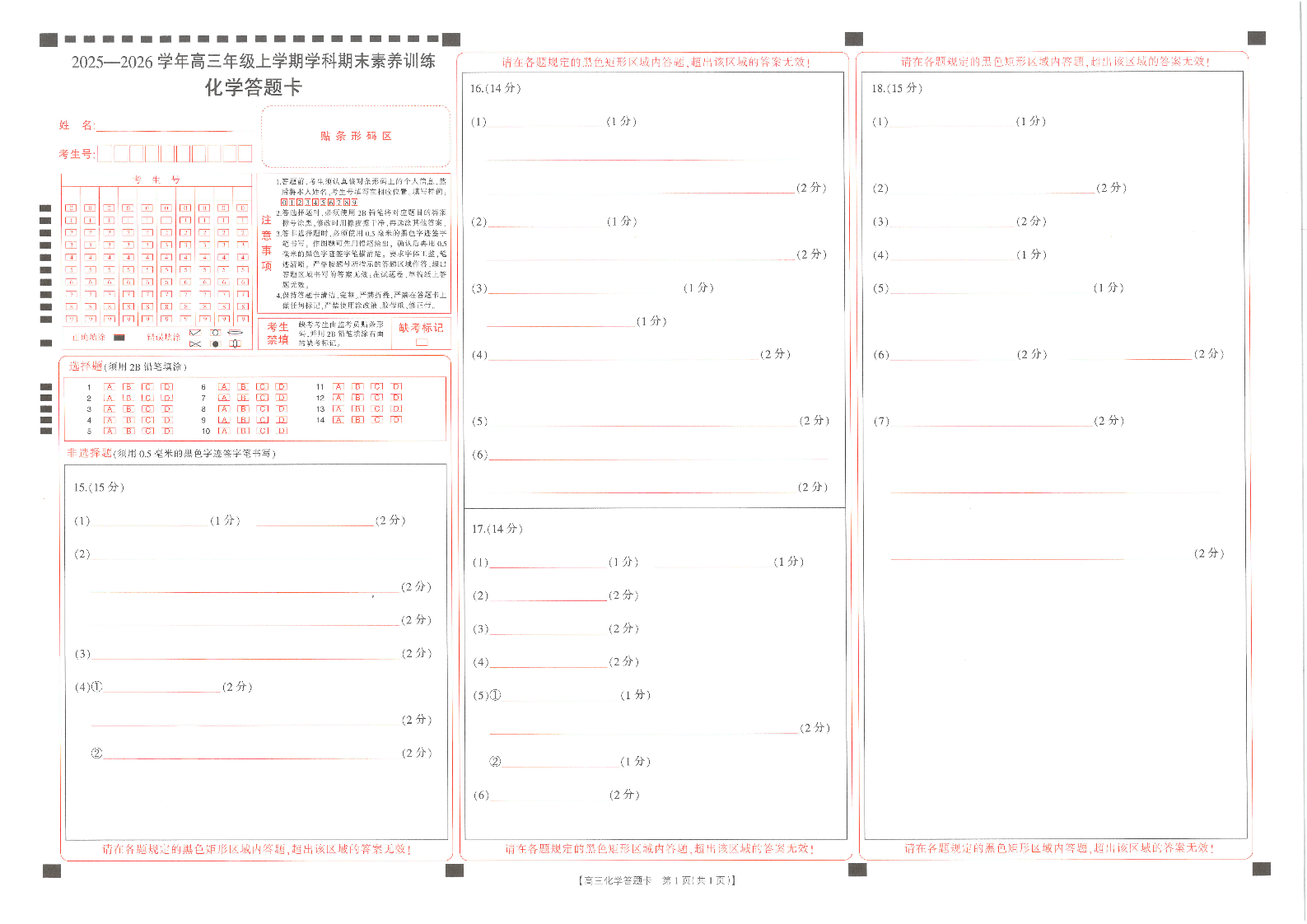 江西省2025-2026学年高三年级上学期学科期末素养训练 化学答题卡.pdf