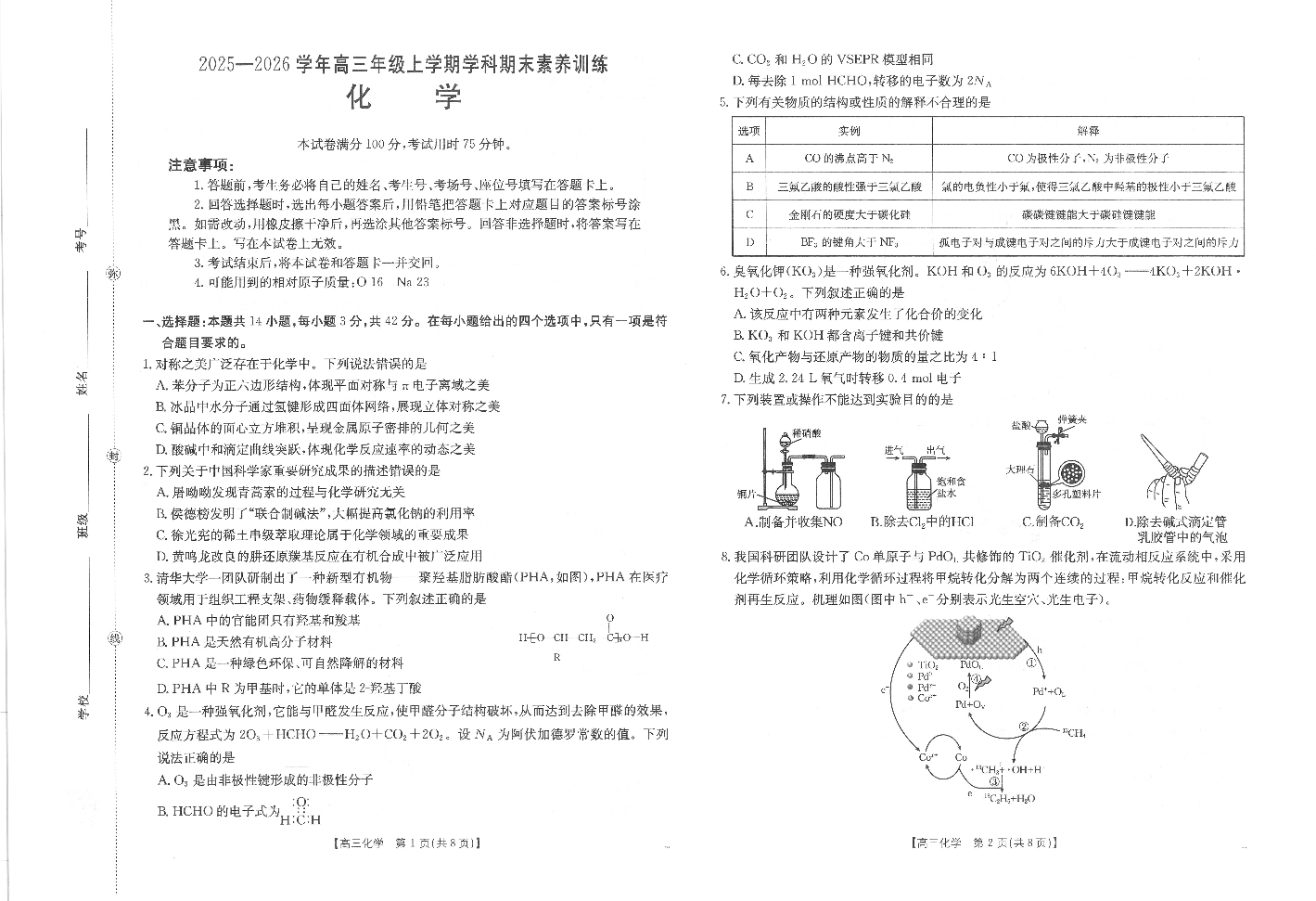 江西省2025-2026学年高三年级上学期学科期末素养训练 化学.pdf