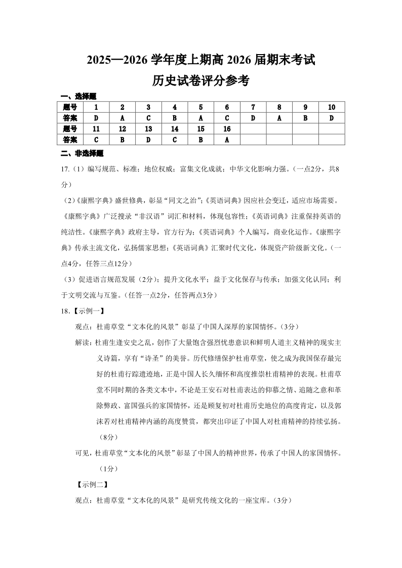成都市第七中学2025—2026学年度上期高2026届期末考试 历史答案.pdf