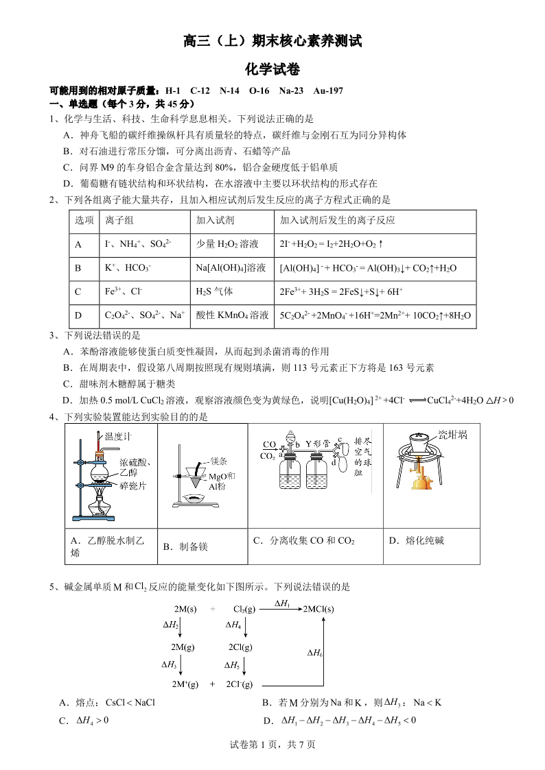 成都市第七中学2025—2026学年度上期高2026届期末考试 化学.pdf