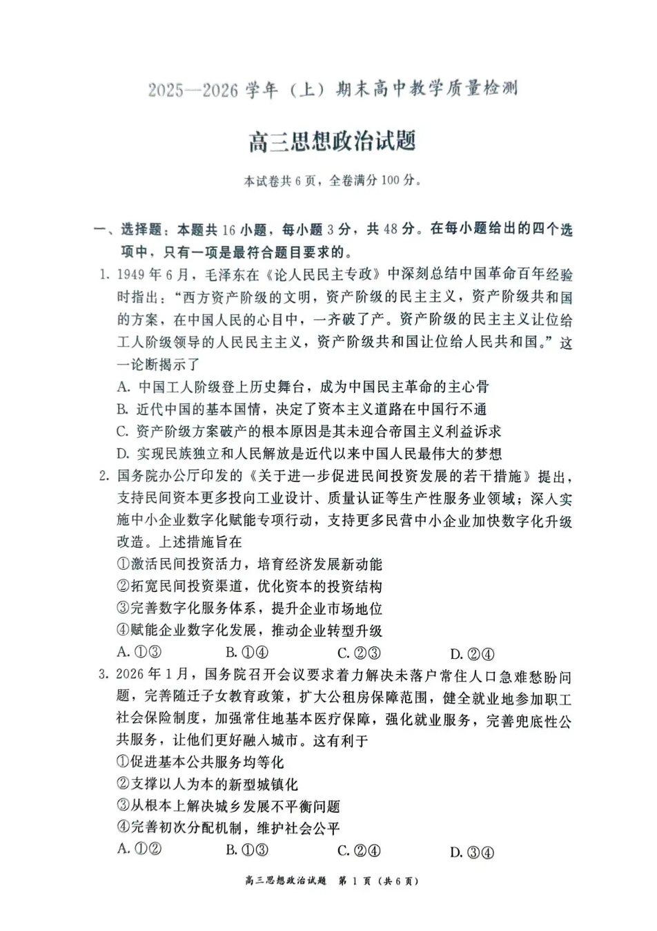 漳州市2025—2026学年(上)高三期末高中教学质量检测 政治.pdf