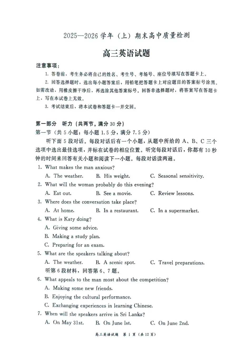 漳州市2025—2026学年(上)高三期末高中教学质量检测 英语.pdf