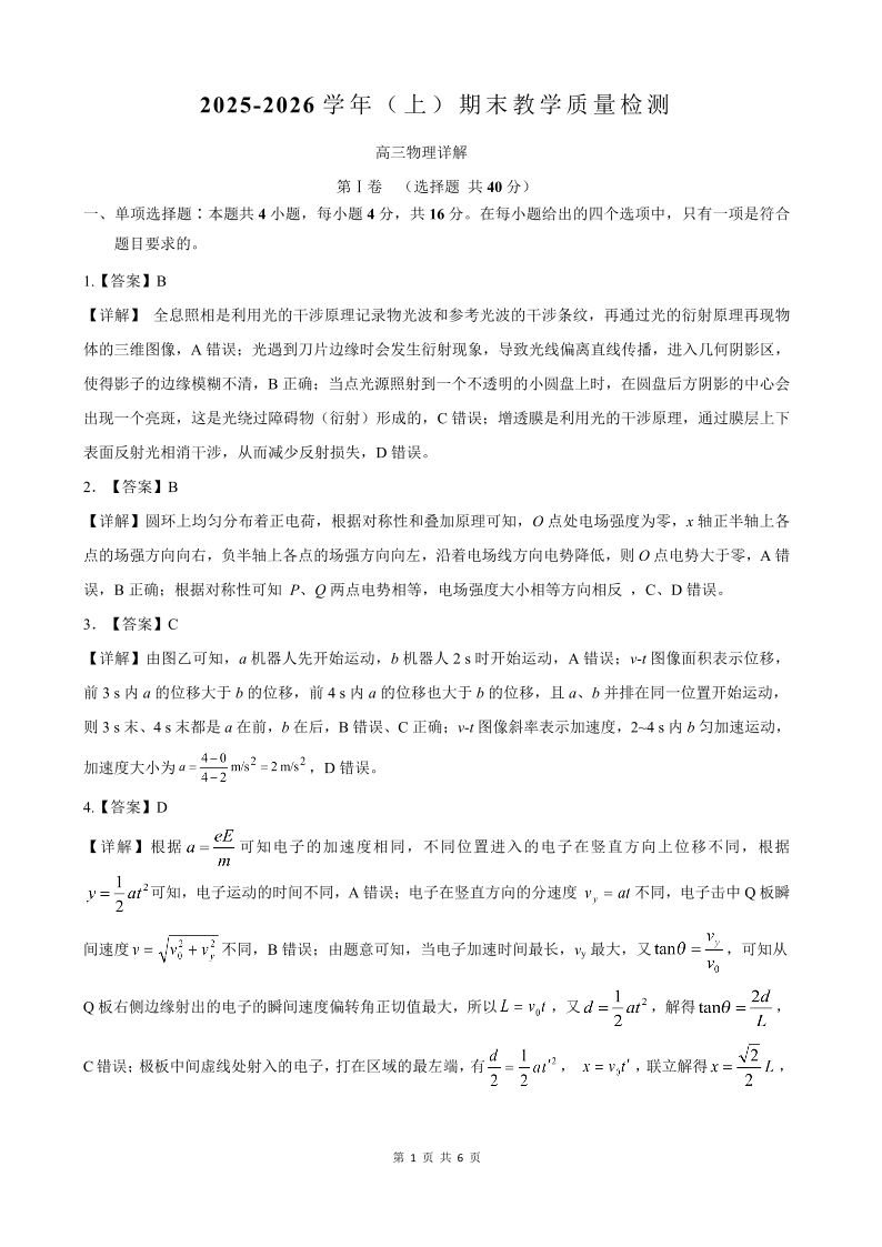 漳州市2025—2026学年(上)高三期末高中教学质量检测 物理答案.pdf