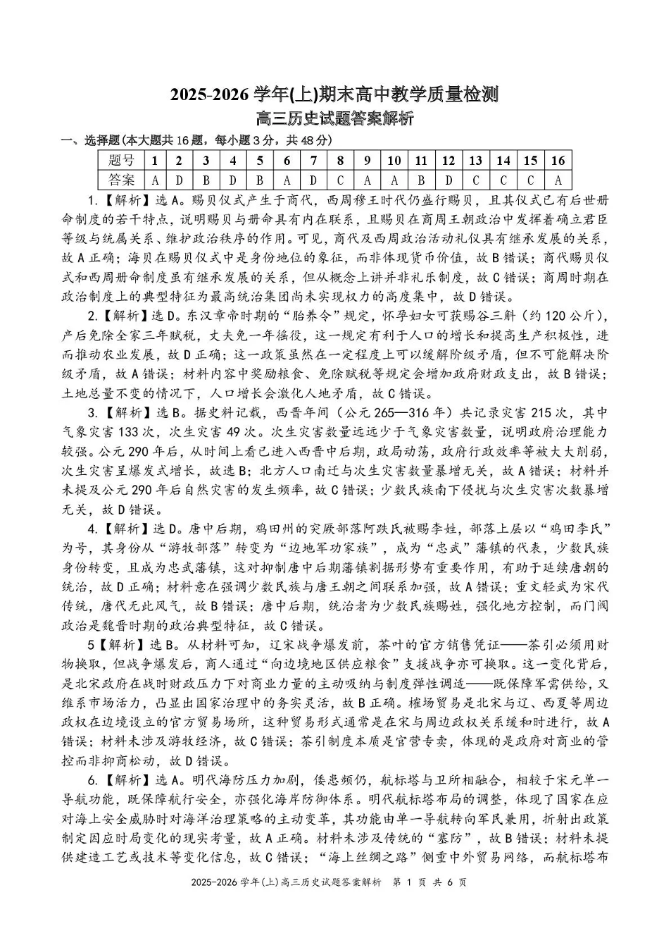 漳州市2025—2026学年(上)高三期末高中教学质量检测 历史答案.pdf
