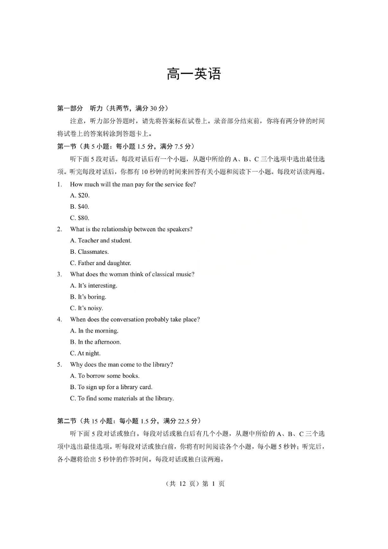 孝感市楚天协作体2025-2026学年度上学期高一年级期末考试 英语试题(含答案).pdf