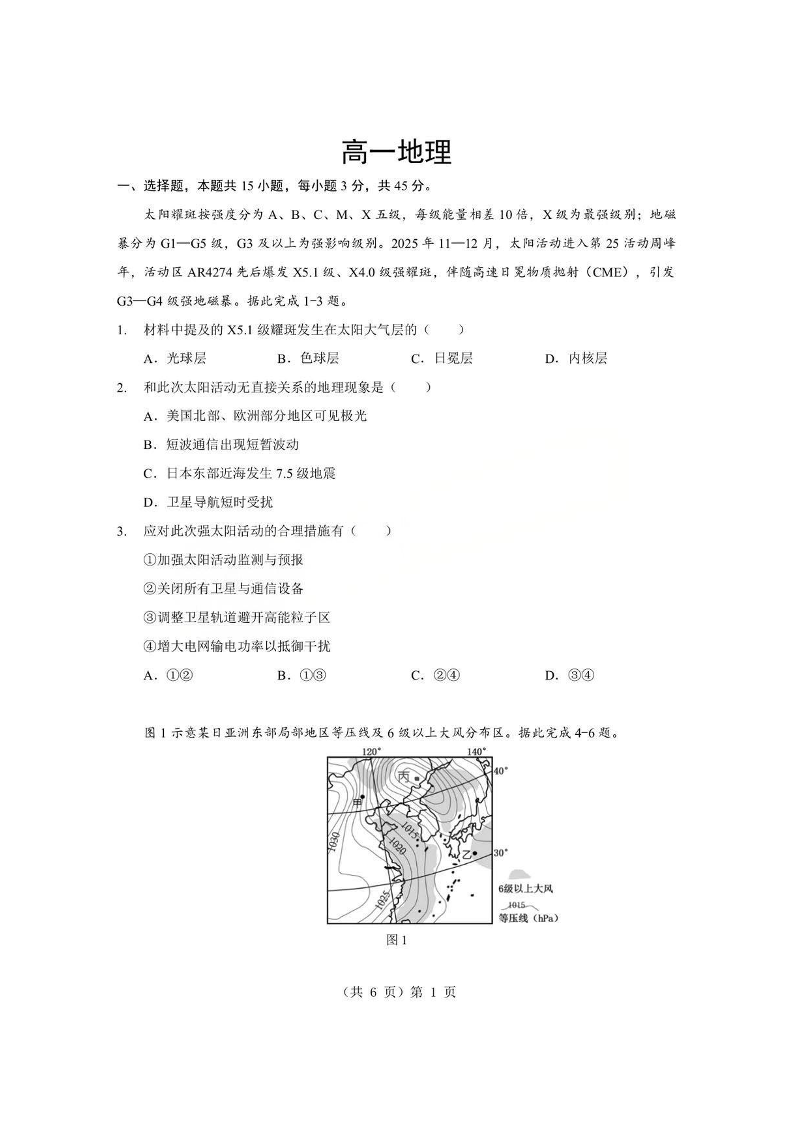 孝感市楚天协作体2025-2026学年度上学期高一年级期末考试 地理试题(含答案).pdf