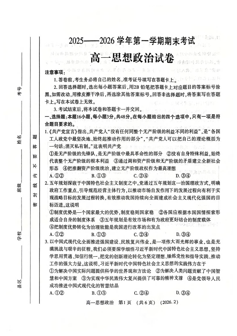 洛阳市2025-2026学年第一学期高一年级上学期期末考试 政治试题(含答案).pdf