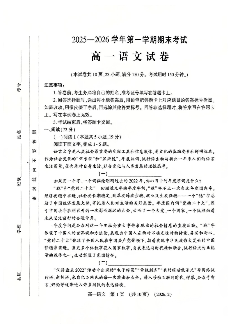 洛阳市2025-2026学年第一学期高一年级上学期期末考试 语文试题(含答案).pdf