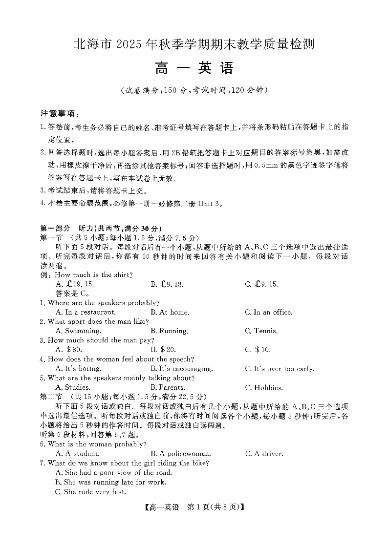 北海市2025年秋季学期高一年级期末教学质量检测 英语.pdf