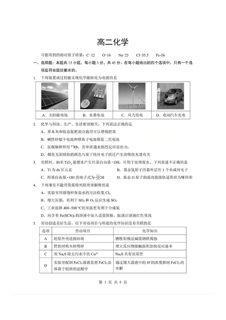 孝感市楚天协作体2025-2026学年度上学期高二年级期末考试 化学试题(含答案).pdf