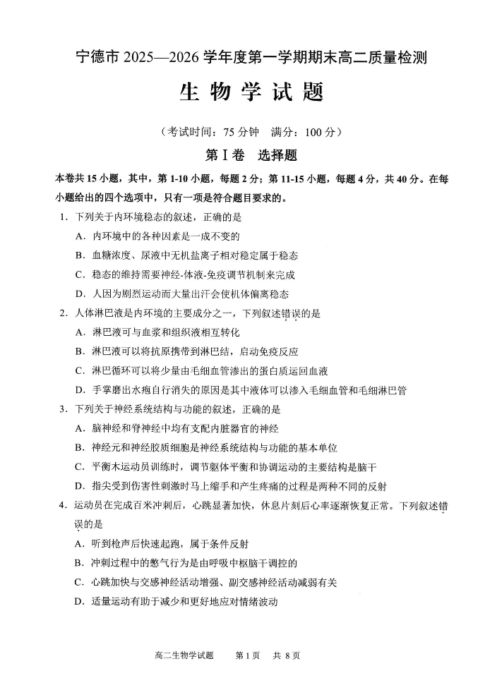 宁德市2025-2026学年度第一学期期末高二质量检测 生物.pdf