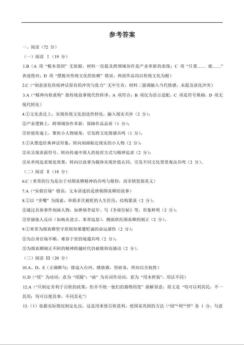 河池市2025年秋季学期高三期末学业水平质量检测 语文答案.docx
