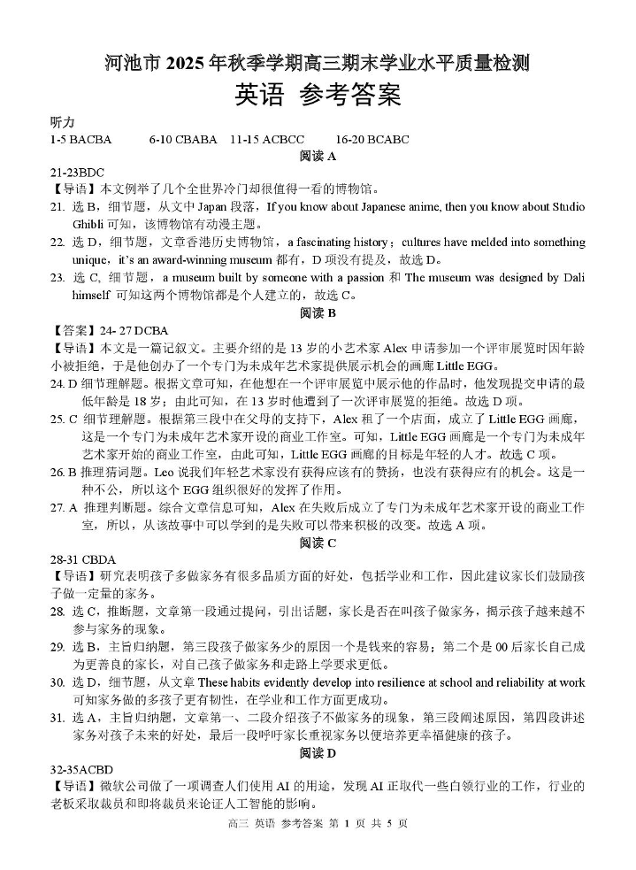 河池市2025年秋季学期高三期末学业水平质量检测 英语答案.pdf