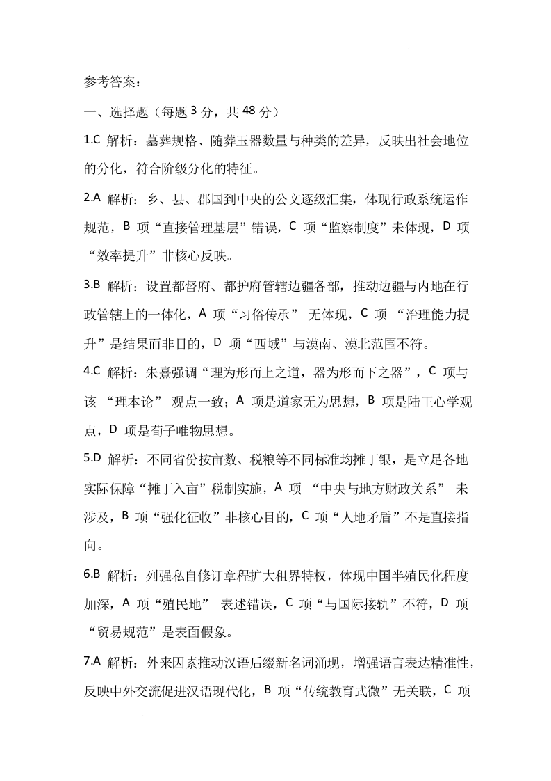河池市2025年秋季学期高三期末学业水平质量检测 历史答案.docx
