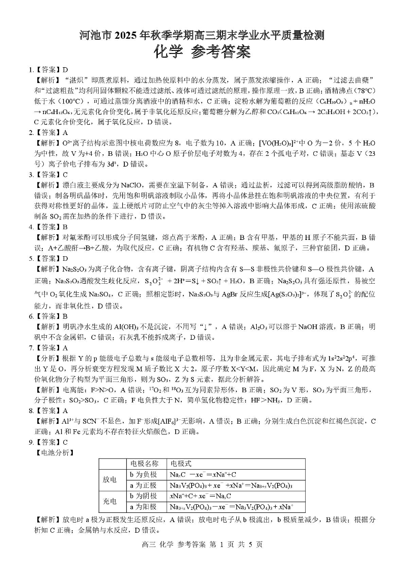 河池市2025年秋季学期高三期末学业水平质量检测 化学答案.pdf