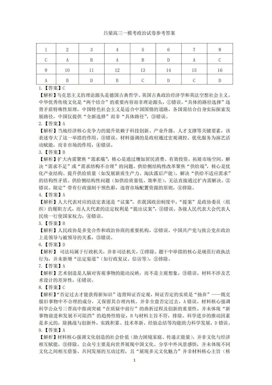 2025-2026学年高三第一学期期末调研测试 政治答案.pdf