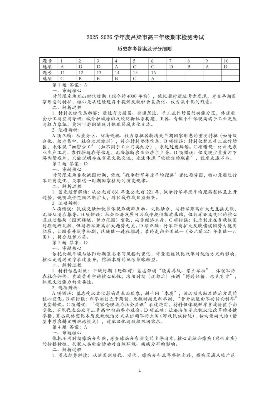 2025-2026学年高三第一学期期末调研测试 历史答案.pdf