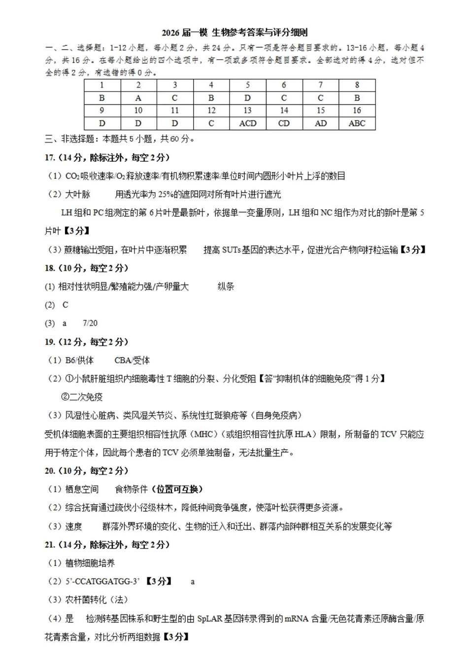 岳阳市2026届高三年级教学质量监测(一)生物答案.pdf