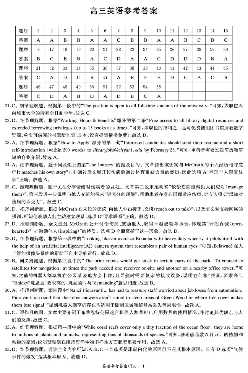湖南师大附中2026届高三月考试卷(六)英语答案.pdf