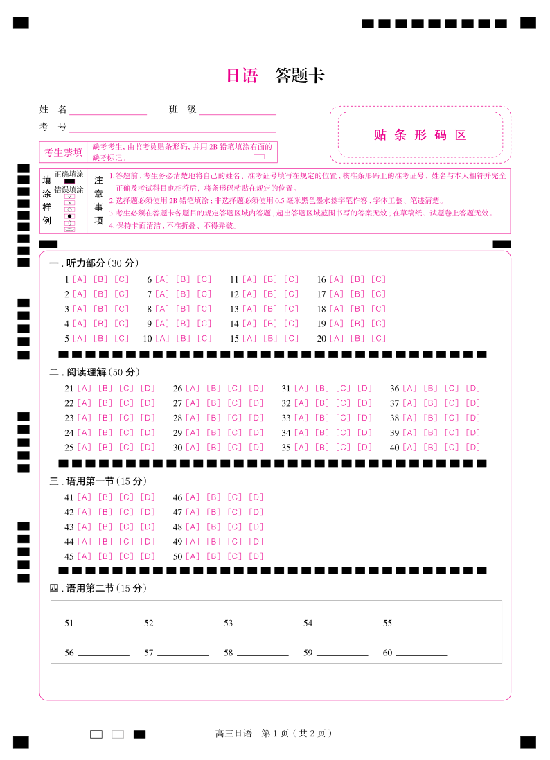 10 2025-2026学年度高二下学期开学收心考 日语答题卡.pdf