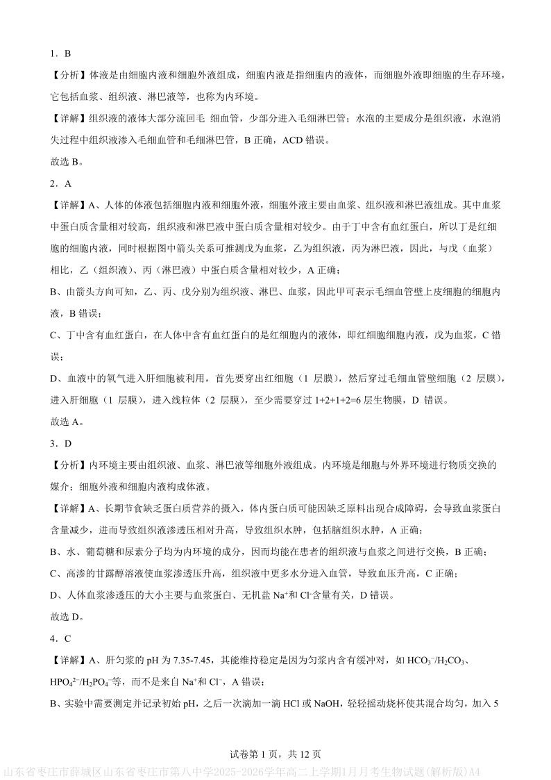 枣庄市第八中学2025-2026学年第一学期期末模拟定时训练 生物答案.pdf