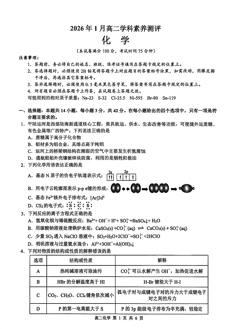 河池市2026年1月高二年级学科素养测评 化学.pdf