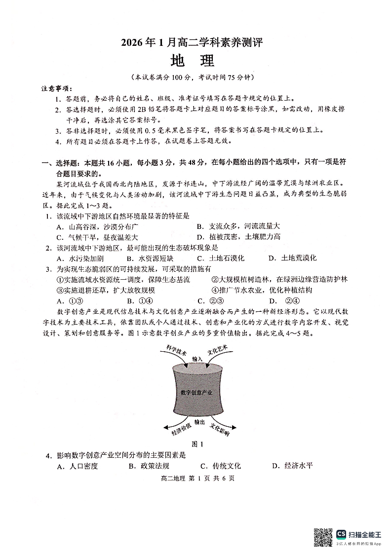 河池市2026年1月高二年级学科素养测评 地理.pdf