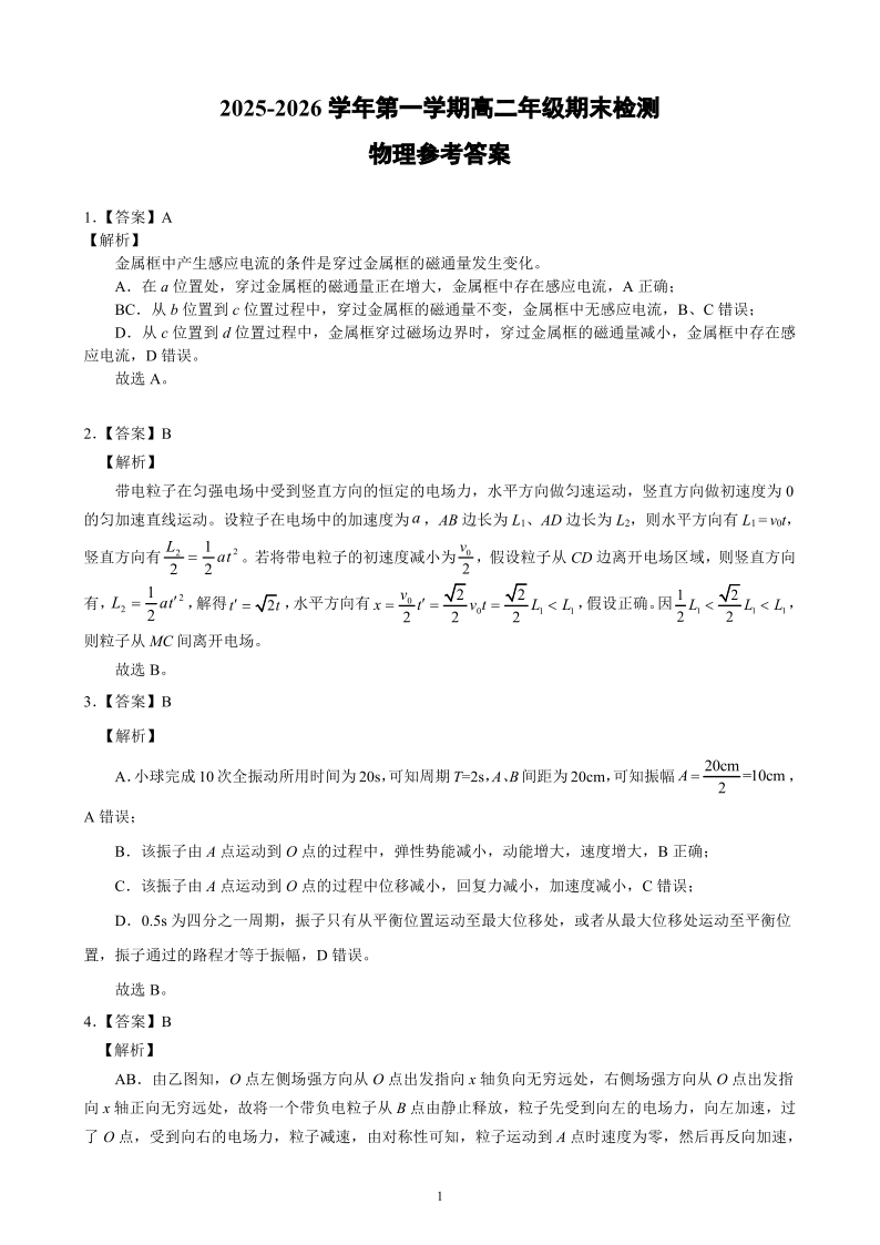 安徽省皖中名校联考2025-2026学年高二上学期2月期末 物理答案.pdf