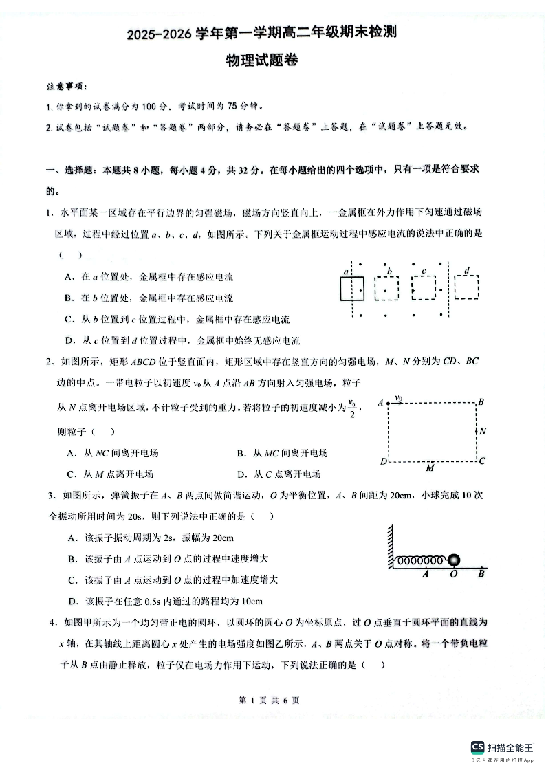 安徽省皖中名校联考2025-2026学年高二上学期2月期末 物理.pdf