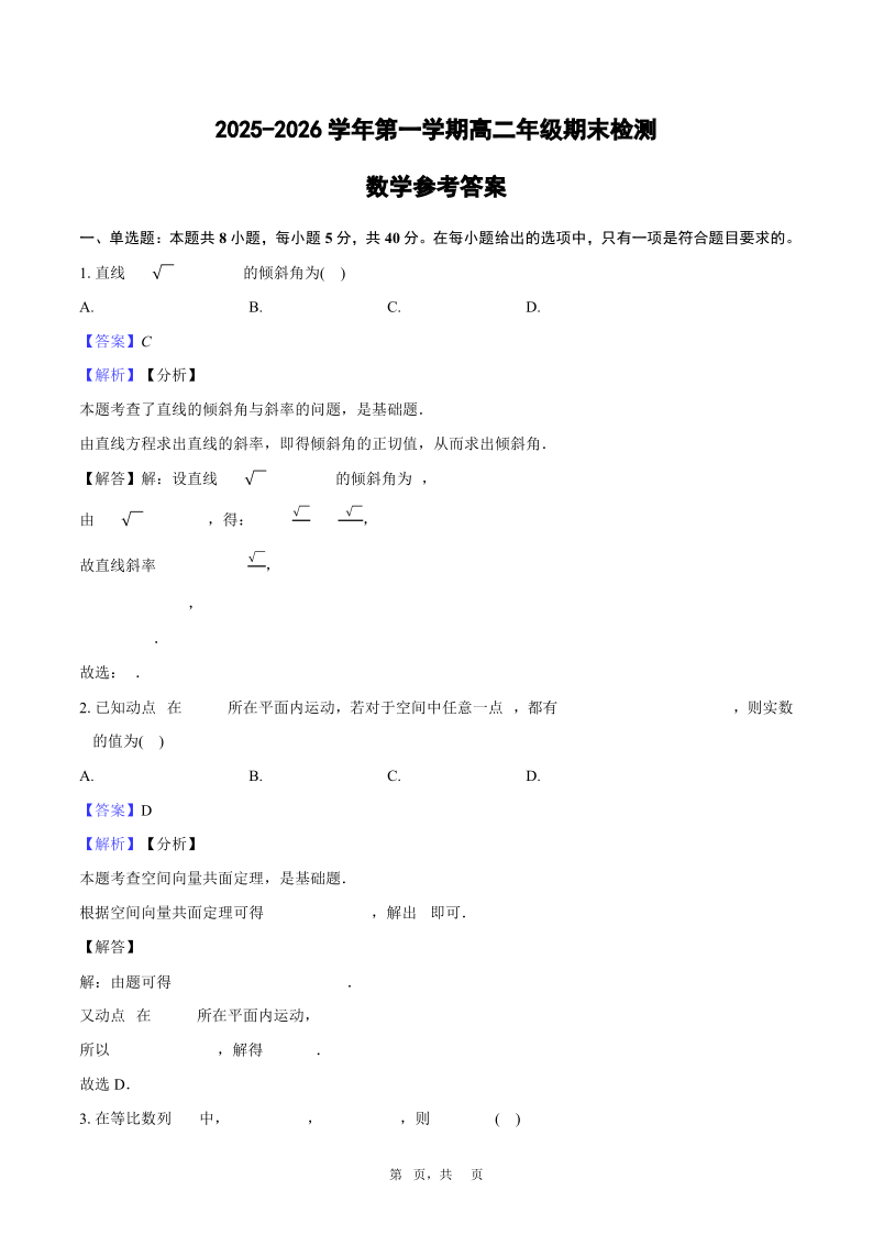 安徽省皖中名校联考2025-2026学年高二上学期2月期末 数学答案.pdf