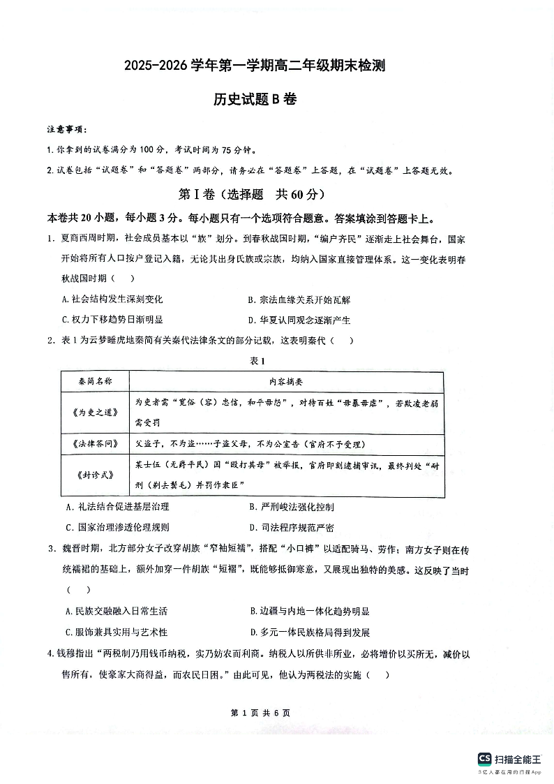 安徽省皖中名校联考2025-2026学年高二上学期2月期末 历史.pdf