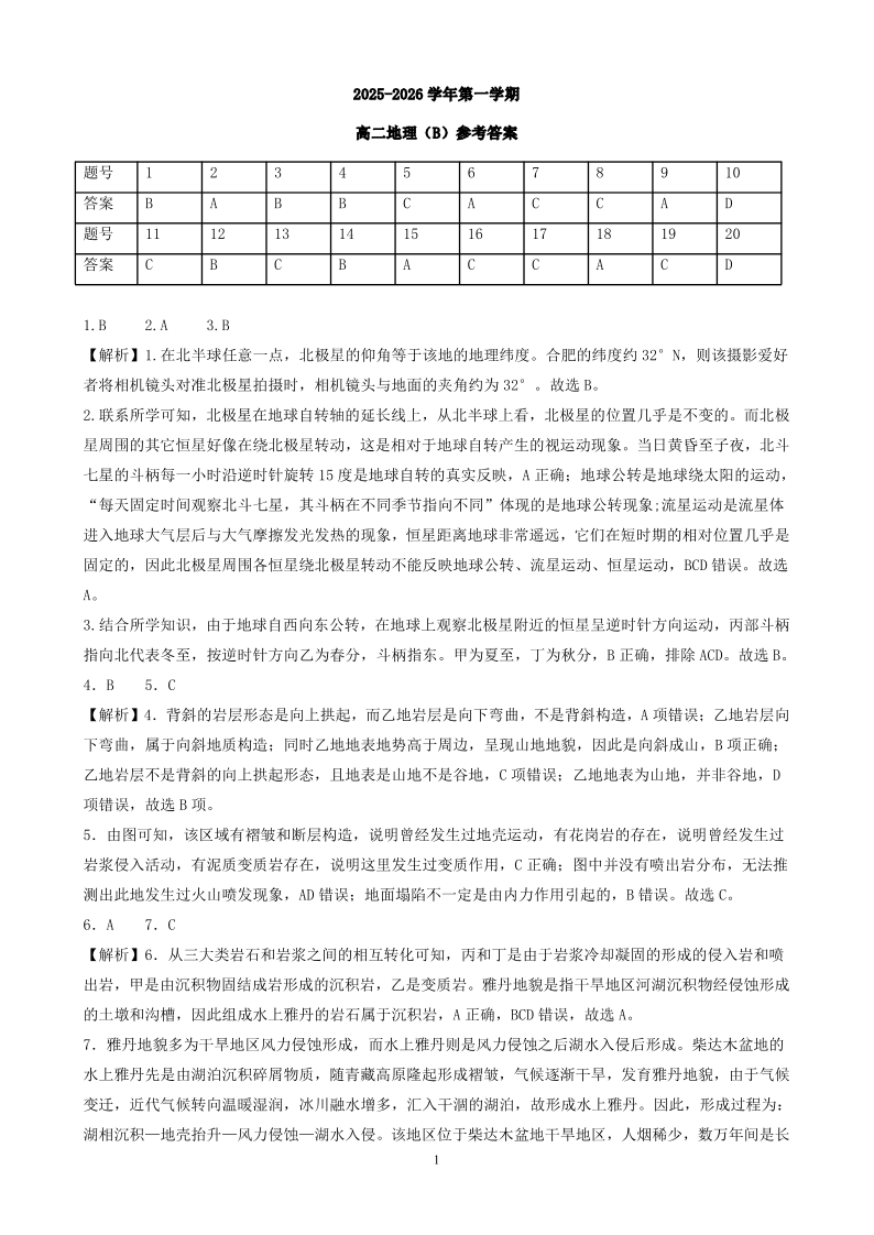 安徽省皖中名校联考2025-2026学年高二上学期2月期末 地理答案.pdf