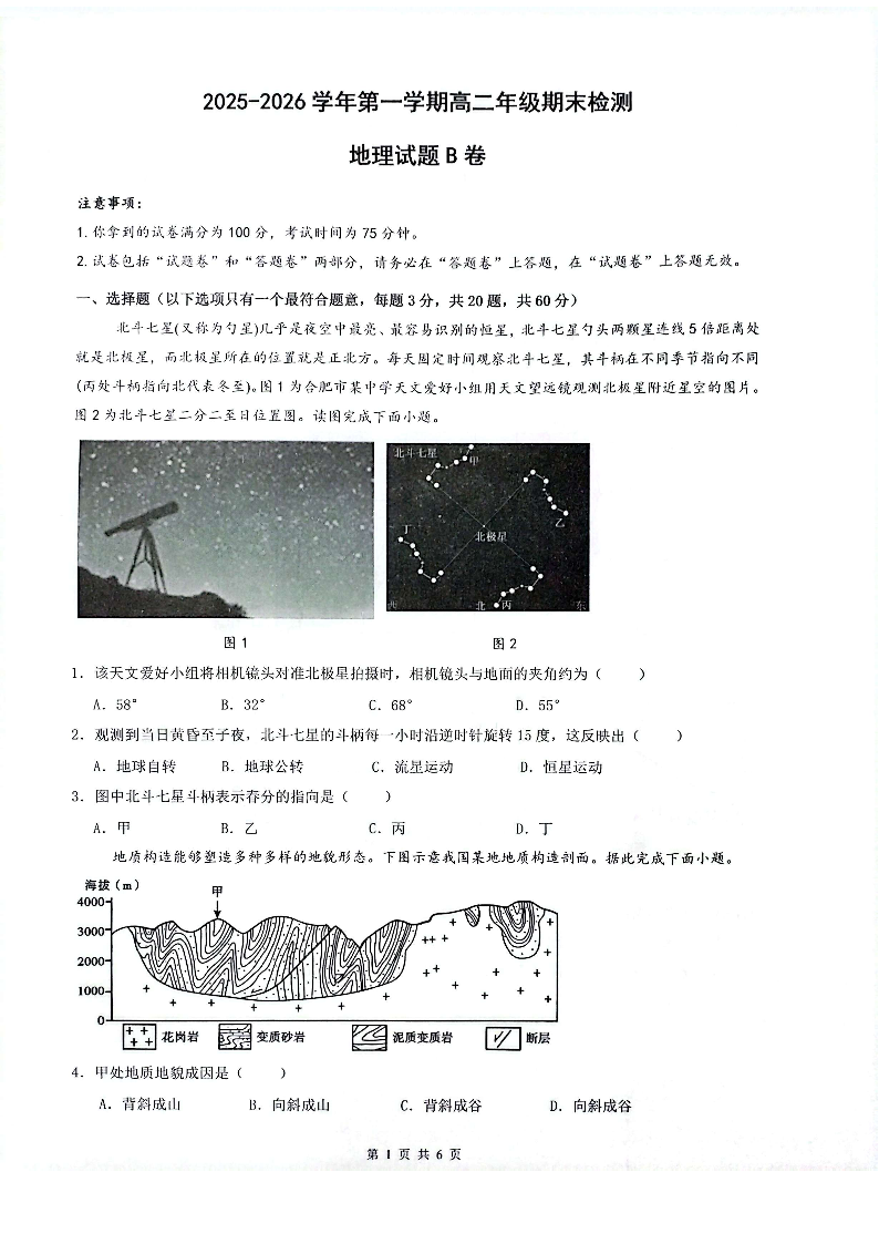 安徽省皖中名校联考2025-2026学年高二上学期2月期末 地理.pdf