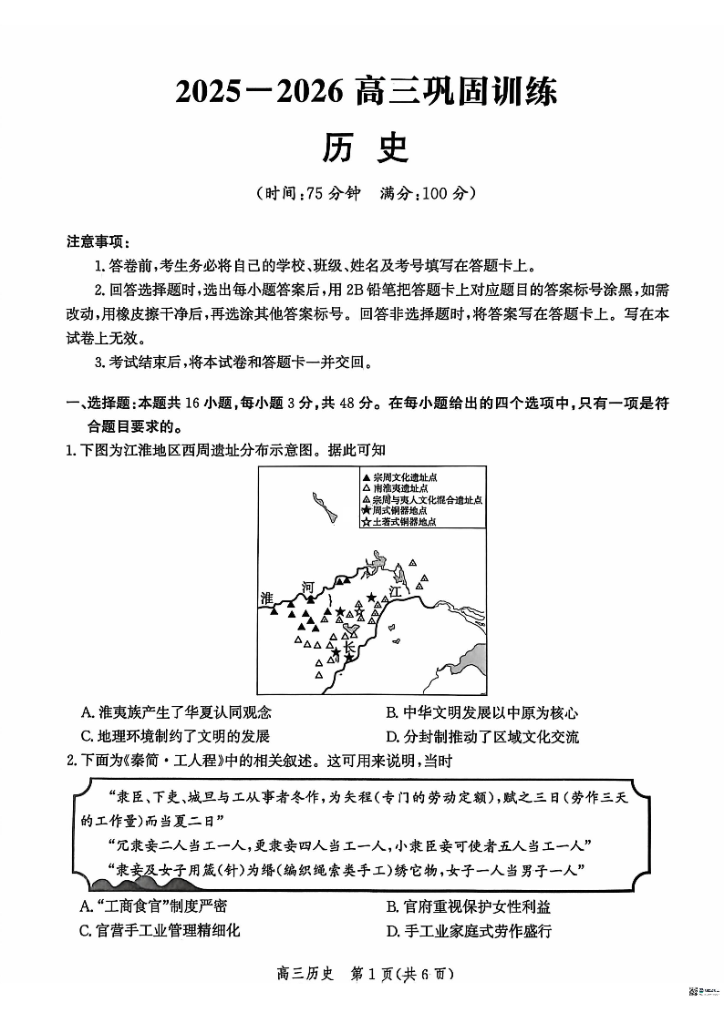 河北省沧州市2025-2026学年高三巩固训练 历史试题(含答案).pdf