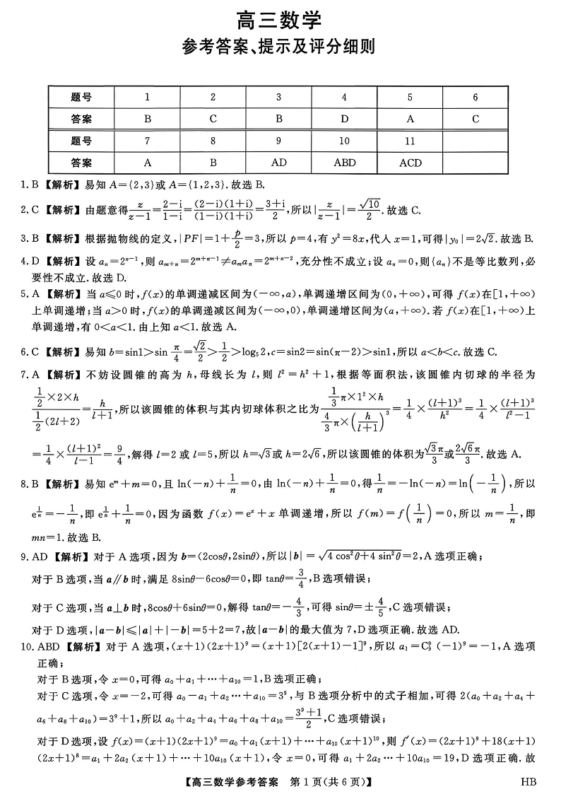 河北省金科大联考2026届高三年级2月阶段性联考 数学答案.pdf