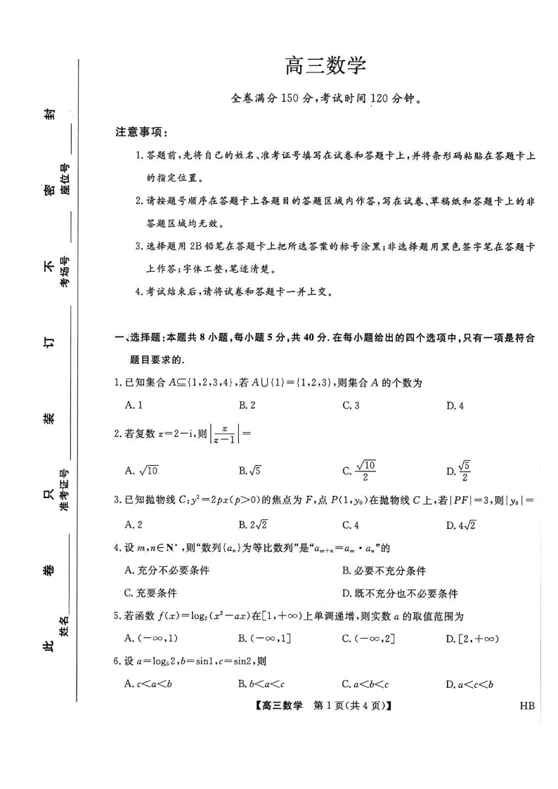 河北省金科大联考2026届高三年级2月阶段性联考 数学.pdf