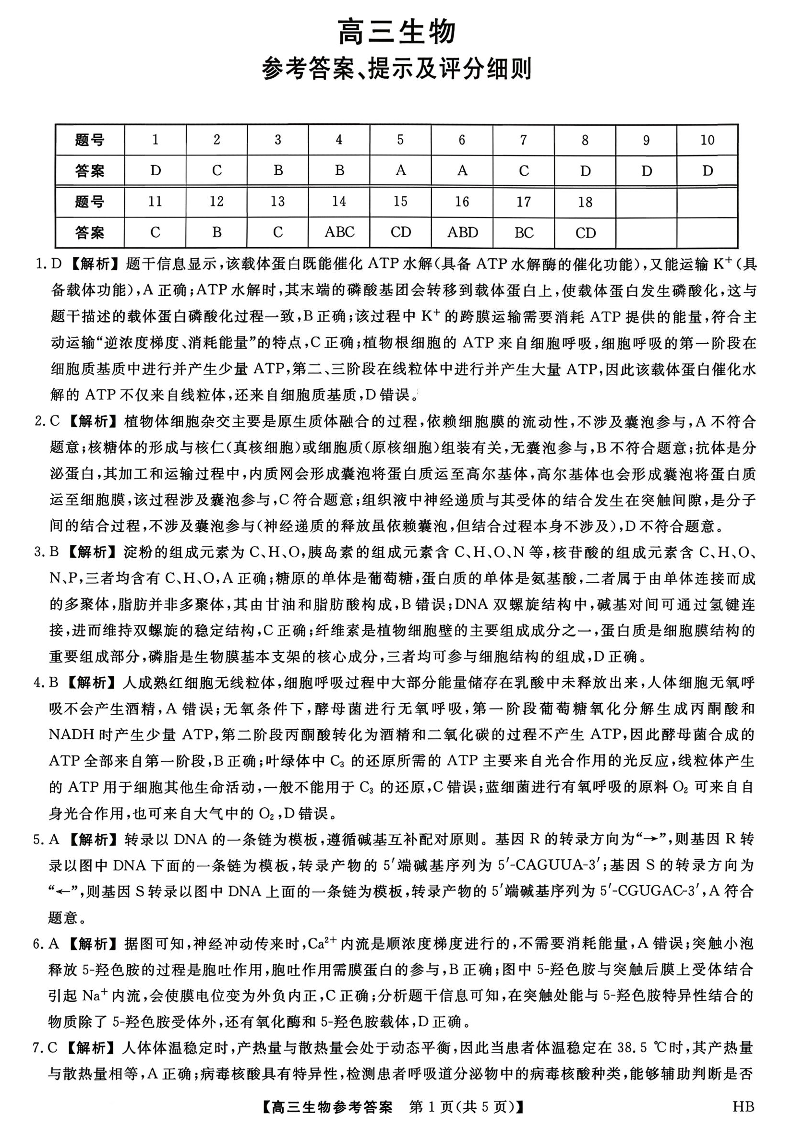河北省金科大联考2026届高三年级2月阶段性联考 生物答案.pdf