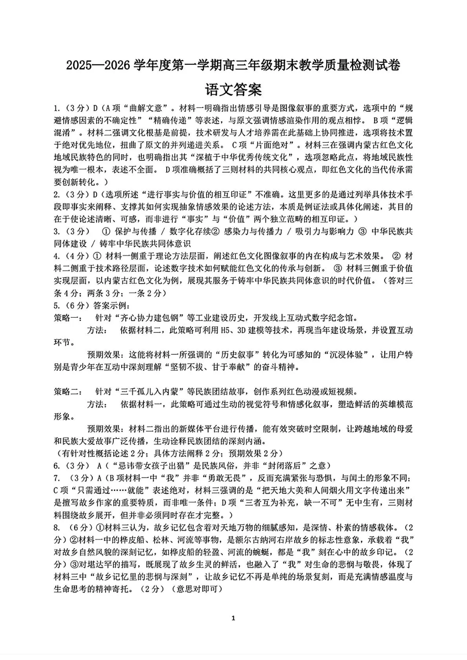 2025—2026学年度第一学期高三年级期末教学质量检测 语文答案.pdf